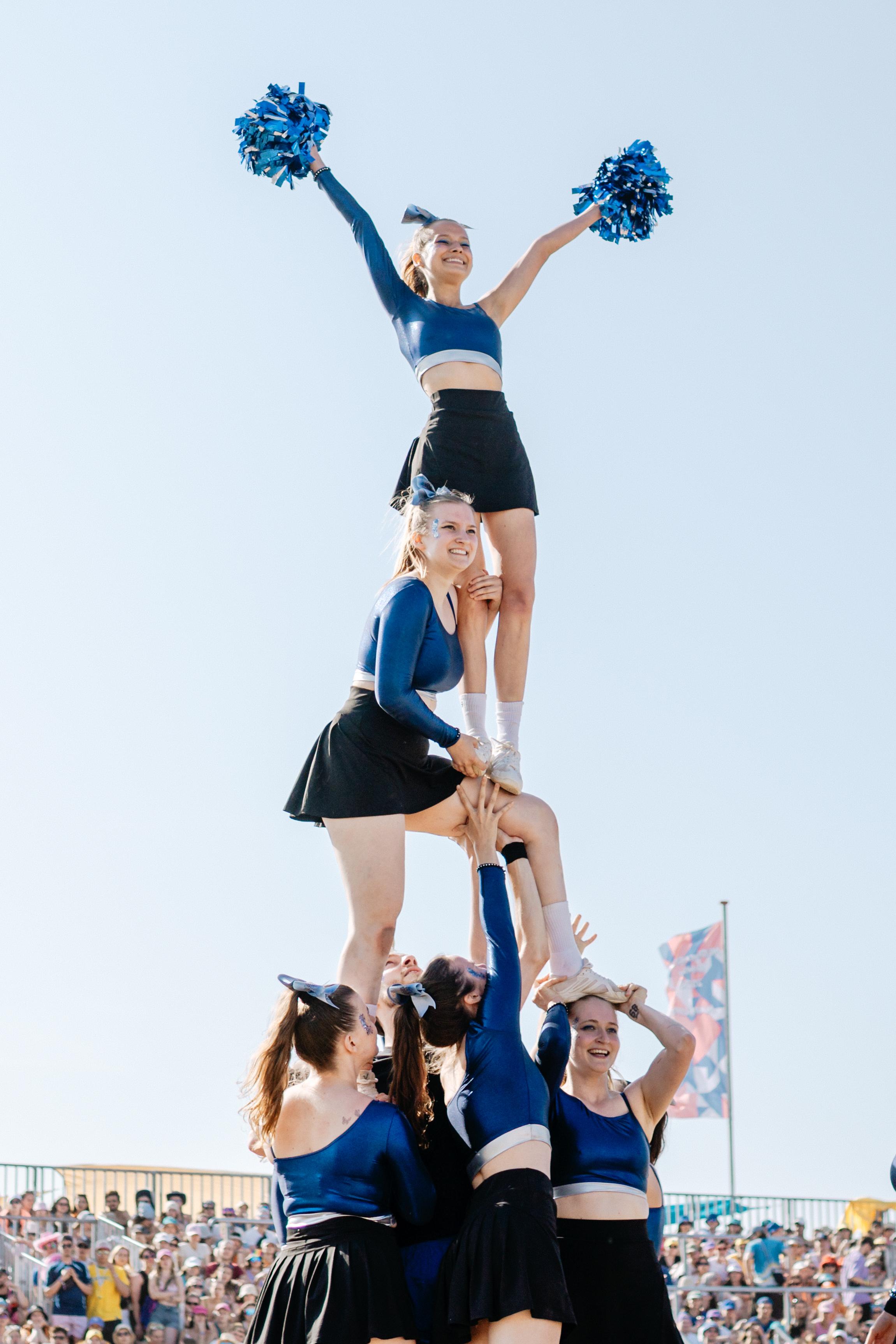 Das Cheerleadingteam der Medimeisterschaften Mannheim bietet Studierenden unserer Fakultät die Möglichkeit Cheerleading nachzugehen und gleichzeitig Teil eines tollen Teams zu werden. Da sich die Sportart aus verschiedenen Komponenten wie Turnen, Akrobatik, Kraftsport und Tanz zusammensetzt, ist sie perfekt geeignet, um eigene Vorerfahrungen einzubringen und sich neue Fähigkeiten anzueignen. Wer sein eigenes Können verbessern oder ganz ohne Erfahrung, aber mit umso mehr Motivation, eine abwechslungsreiche Sportart kennenlernen will, ist immer herzlich willkommen. Denn wir suchen auch dieses Jahr wieder neue Leute für die Cheerleadingsaison 25/26.